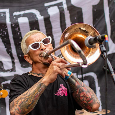Vocalista y trombonista en “Kemadito Sound” proyecto que transita su tercer año de Giras por Europa con recorridos de 12 países por temporada entre festivales y eventos